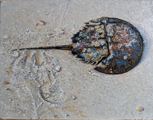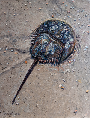"Horseshoe Crab 2025" 6 x 8" oil (Sold) $650. |
