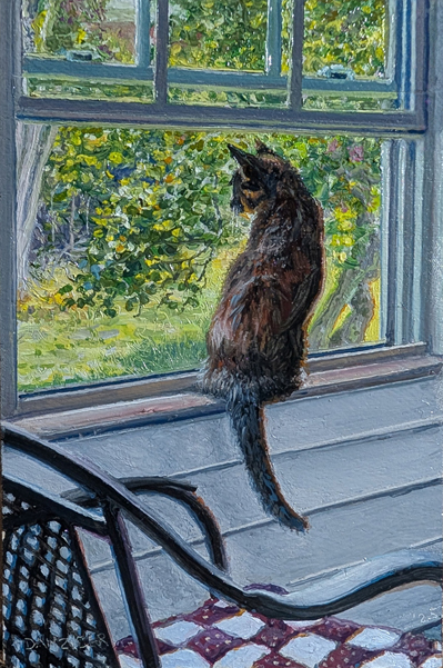 "Cat at the Window" 4 x 6 inches oil (Sold) $500. |